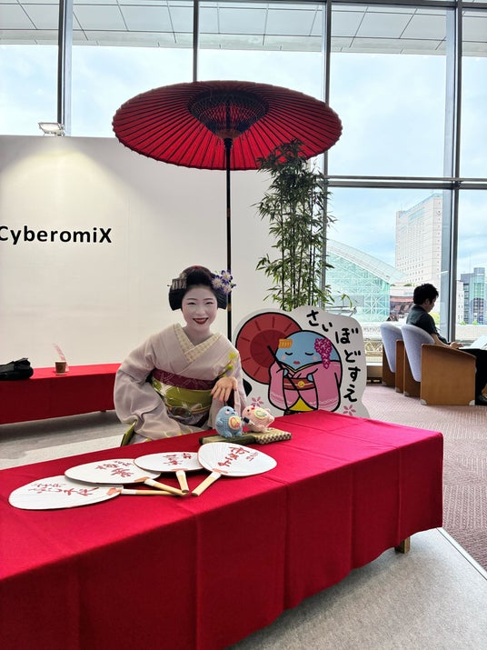 両セミナーでは京都・上七軒より舞妓さんを特別ゲストとして招き、雅やかな演出で参加者をお迎え。科学と伝統文化の融合による独自演出で、CyberomiXのブランド力と魅力を体感できる学会体験となりました。
