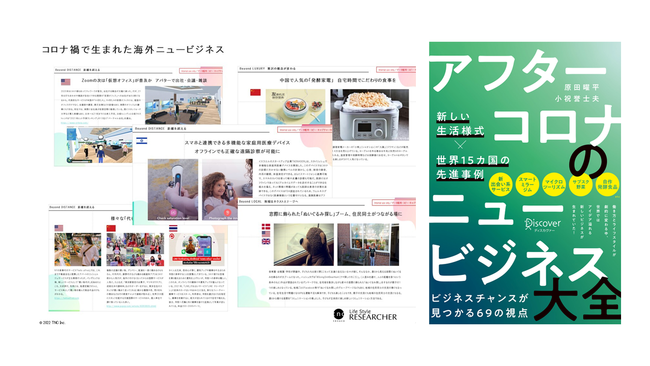 2021年7月、マーケティングアナリスト原田曜平氏とTNC代表小祝の共著『アフターコロナのニュービジネス大全』を発刊(ディスカヴァー・トゥエンティワン)。調査対象15カ国およそ200事例以上という規模で、TNC独自の海外在住日本人女性ネットワーク「ライフスタイル・リサーチャー(R)」がコロナ禍の最新動向をリサーチ。その結果をもとに世界各国の新しいビジネス・生活スタイル・価値観の変化を感じられる事例を多数紹介し、日本のビジネスに落とし込むための提案も含む内容でベストセラーに。各種メディアにも掲載・出演。2022年には中国語、韓国語版も出版。