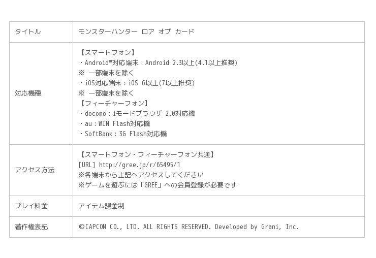株式会社グラニ(本社:東京都港区、代表取締役社長:谷 直史、以下、グラニ)、株式会社カプコン(本社:大阪市中央区、代表取締役社長:辻本 春弘、以下、カプコン)、グリー株式会社(本社:東京都港区、代表取締役会長兼社長:田中 良和、以下、グリー)は、ソーシャル・ネットワーキング・サービス(SNS)「GREE」上で提供している、「モンスターハンター」シリーズのソーシャルカードゲーム『モンスターハンター ロア オブ カード』のサービス開始2周年を記念して、キャンペーンを実施します。