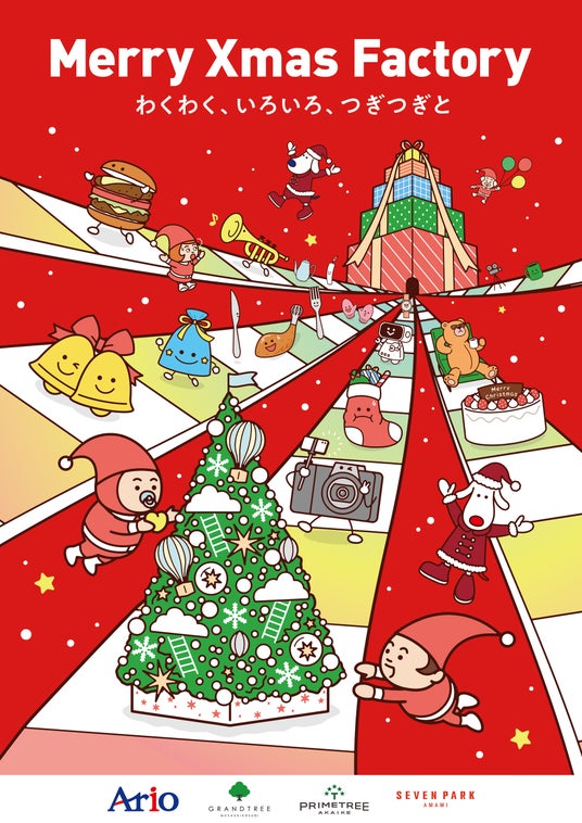 社長:泉井 清志)は複合型ショッピングセンターのアリオ各店・グランツリー武蔵小杉・プライムツリー赤池・セブンパーク天美にて、「Merry Xmas Factory わくわく、いろいろ、つぎつぎと」が開催中!