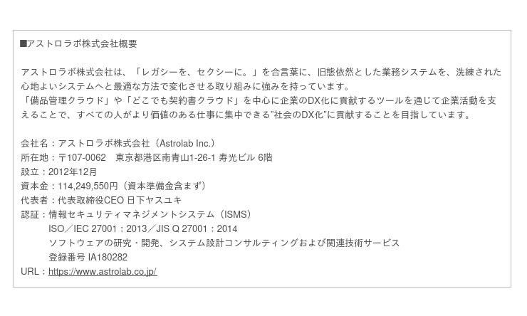 アストロラボ株式会社は、企業現場作業のDX化をサポートすべく皆様のご意見を元にサービスの改善に努めてまいります。