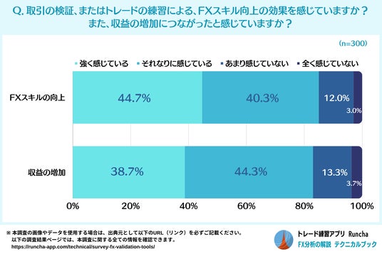 FXにおける検証・練習がスキル向上・収益増加につながったと感じているか質問したところ、以下のような結果となりました。