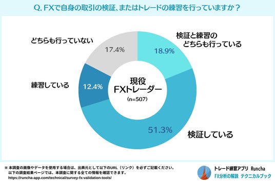 検証・練習のどちらも行っていない人は17.4%で、FXトレーダーの大半(82.6%)が検証・練習のいずれかを行っているという結果です。