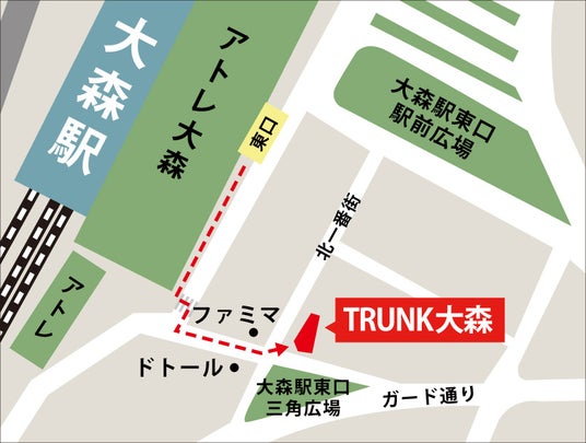 今回の「TRUNK大森」は、駅東口から徒歩2分、かつ視認性の良い角地に位置しているため、集客性・視認性ともに非常に優れたロケーションです。飲食・物販・サービスなど、多様な業態にとって高いポテンシャルを持つマーケットといえます。