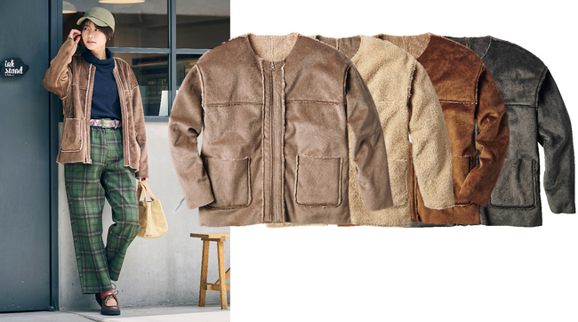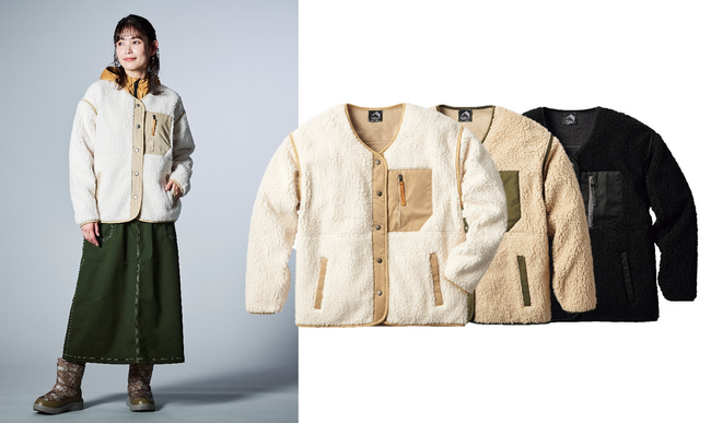 ・デタッチャブルボアフリースジャケット サイズ:M、L カラー:左から アイボリー、ベージュ、ブラック