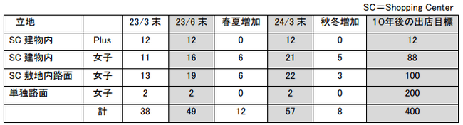 ★現在はSC内や敷地内への出店が中心だが、近い将来に「単独路面店」を年間20店出店することが目標