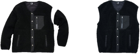 ◆コーディネートの幅が拡がるボアタイプで、袖が取れてベストにもなる軽量アウター