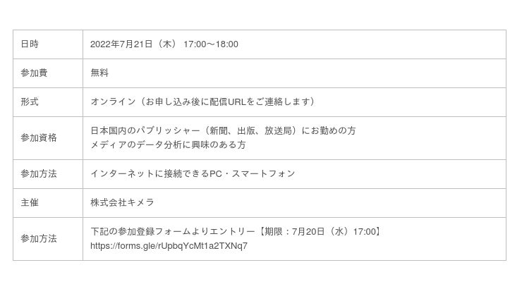 国内大手68メディアのデータ分析を支援する株式会社キメラが主催