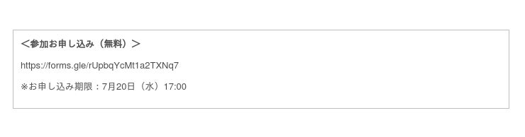 以下の参加お申し込み登録フォームに、必要事項をご記入のうえお申し込みください。後日、ご登録のメールアドレス宛に参加URLをお送りいたします。