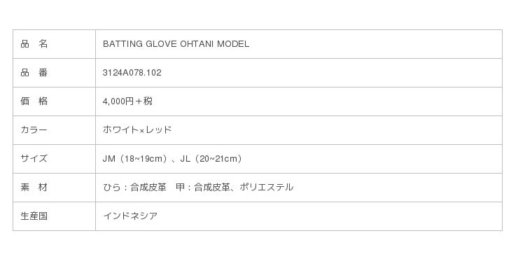今回発売するのは、大谷翔平選手が今シーズンに使用している用具のデザインや仕様を取り入れた、少年用の軟式用野球グラブ、バッティング用手袋のレプリカモデル、および同選手が使用するモデルのデザインを採用したトレーニングシューズです。