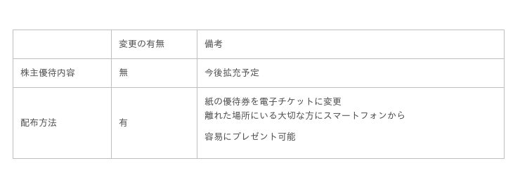 また、今後の株主優待内容の拡充を見据えた場合、機動的な変更が可能となるため、株主の皆様の利便性は今後も向上していくものと考えております。
