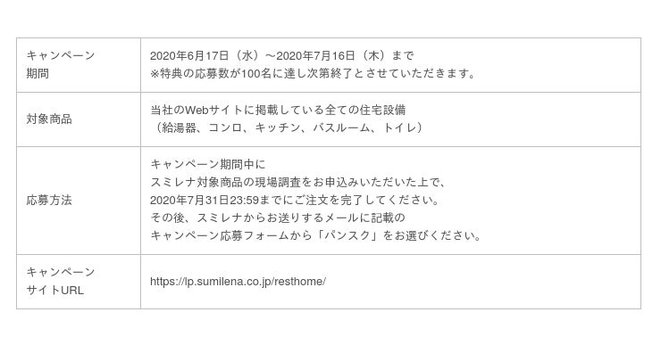 これにより、スミレナのサービス「暮らしの月額定額制サービス」を対象期間中注文された方は、第1弾キャンペーン「Rest HOME」により「パンスク」を2か月無料でお楽しみいただけます。