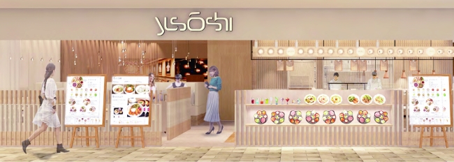 あべのHoopで人気の「和カフェyusoshi」が移転に伴い、一汁三菜デリごはんの小鉢がバラエティ豊かなセルフサービスへとリニューアル。新導入のマットレス席とテラス席で、やすらぎのひと時を。
