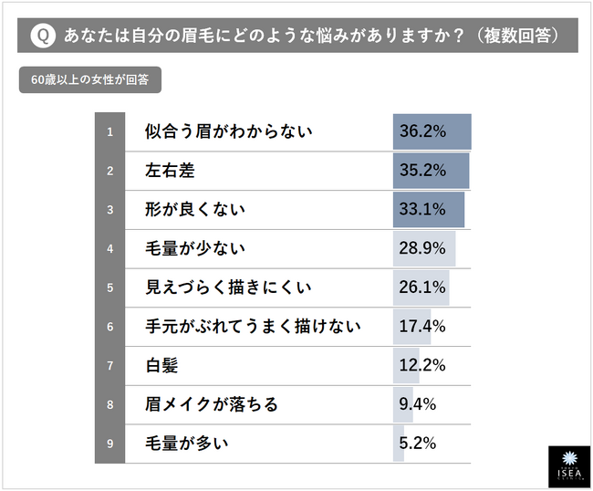 4.【シニア・ハイシニア女性の眉毛の悩みトップ3】1.似合う眉がわからない 2.左右差 3.形が良くない