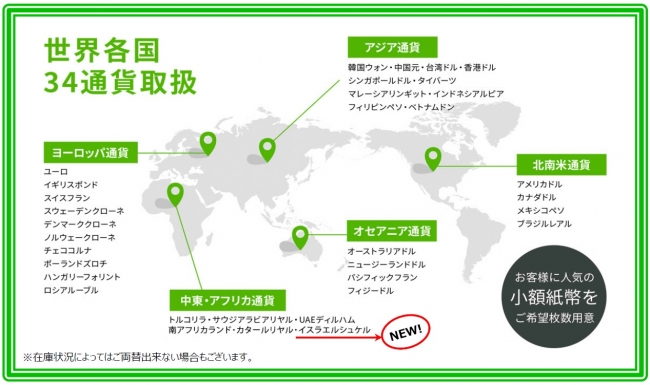 今後、就航が予定されているイスラエルへの直行便に向け、日本円から外貨、外貨から日本円、双方向のご両替に対応し、お客様の快適な旅のお手伝いをいたします。
