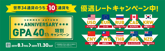 ますます便利になる「GPA外貨両替専門店」を是非ご利用ください。