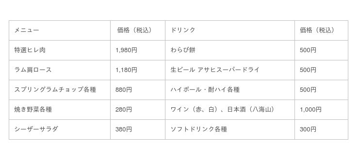 当店は、低カロリー、高タンパクでヘルシーなラム焼肉を、ランチや晩ごはんとして、お一人でも気軽に楽しんでいただけ る新しいスタイルのお店です。全席カウンター席で、一席ごとに焼き台を用意しております。お食事はお肉と焼き野菜、ごはん、スープ、キムチがセットになった御膳スタイルでご提供します。