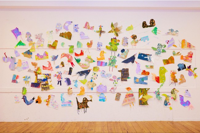 “ 多様性 ”をテーマに、本来ごみとなってしまうショッピングバッグを活用し、世田谷区に住む子どもたちの手によって色とりどりの鳥の切り絵を作りました。多様な形・色・模様が多様性を表現し、ボーダーを軽やかに超えて羽ばたいていく鳥をモチーフにしたアート作品です。