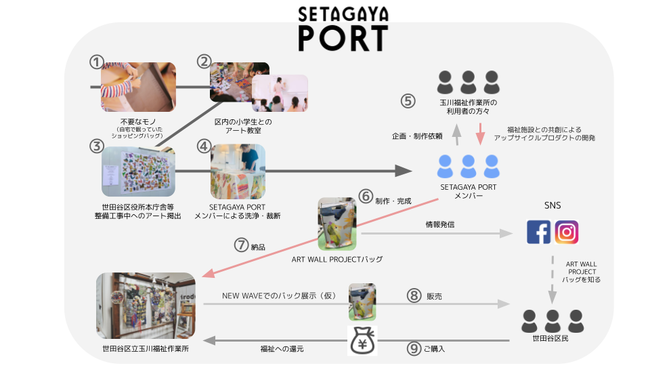 世田谷発の持続的なビジネス・カルチャーを生み出すべく、dot button company株式会社(本社:東京都世田谷区代沢、代表取締役:中屋 祐輔)と、世田谷区(区長:保坂展人)が行う「SETAGAYA PORT(https://setagayaport.jp/)」プロジェクトにて、「社会福祉法人 大三島育徳会 世田谷区立玉川福祉作業所(https://www.oomishima.jp/publics/index/15/)」の協力のもと、「ART WALL PROJECT」の次なるステップとしてアップサイクル製品を制作します。