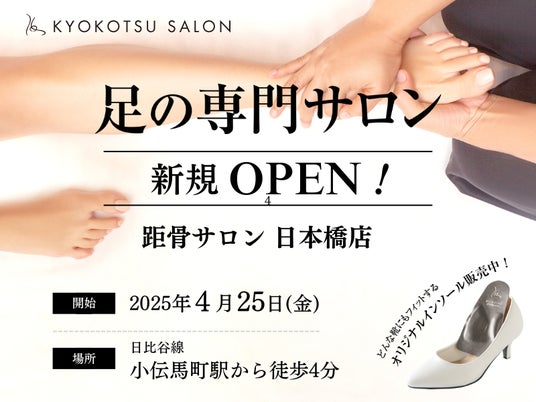 SNSで話題の足の専門サロン「距骨サロン」が、全国95店舗目となる「距骨サロン日本橋店」を2025年4月25日(金)に新規OPENいたします。