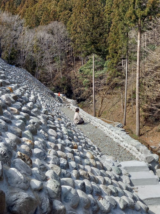 東京の奥座敷と言われ、清流が流れる寺院裏の川から眺める景観は、10年もの歳月をかけて造り上げており、4万5000個の石積みは職人が一つ一つ積み上げてきたものです。敷地内各所に瞑想や川ヨガ、山ヨガのできるスペースが構成配置され、川行や畑作業もできる構想でこちらも完成間近です。
