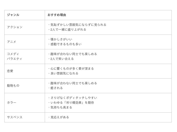 相手との関係を深めるという意味でも、映画やドラマ鑑賞はお勧めです。