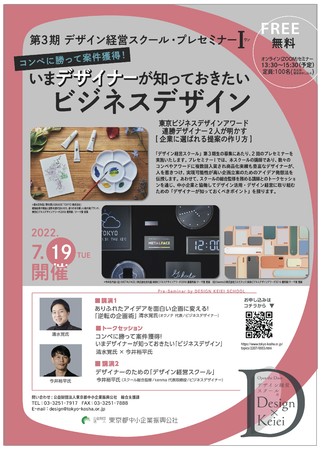 公益財団法人 東京都中小企業振興公社(本社:東京都千代田区、理事長:目黒 克昭)は、デザイナーと中小企業者がデザイン経営について体系的に学ぶ「デザイン経営スクール」第3期生の募集にあたり、本スクールを体験できるプレセミナーを7月19日(火)・8月3日(水)に無料開催します。(各回先着100名・要事前予約)