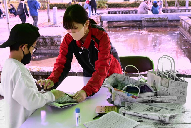 「池田町産の杉でマイ箸・箸置き・取り皿づくり」「新聞紙エコバッグづくり」「食べられるスプーンプレゼント」など、楽しく環境への取り組みに参加できる企画も実施しました。