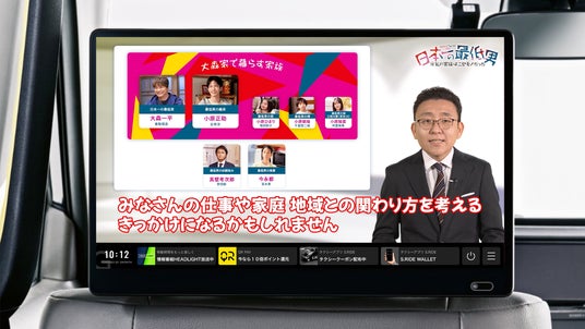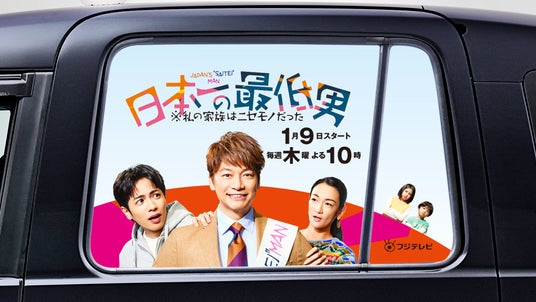 2025年1月9日(木)夜10時から放送をスタートするフジテレビの新ドラマ『日本一の最低男 ※私の家族はニセモノだった』とのコラボタクシーが、2025年1月6日(月)~1月19日(日)の2週間限定で都内を走行します。コラボタクシーのうち、100台はタクシーの車窓に主演の香取慎吾さん・志尊淳さん・冨永愛さん・増田梨沙さん・千葉惣二朗さんが登場し、2台はドラマ仕様の特別ラッピング車両が走行します。本コラボタクシーは、タクシーアプリ「S.RIDE」で指定配車が可能であり、車内のタクシーサイネージメディア「GROWTH」では、フジテレビアナウンサーの上垣皓太朗アナウンサーがレポーターとして特別出演し、ドラマのスタートを独自の解説で盛り上げます。