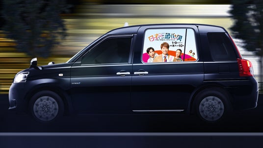 ■車窓には主要キャスト陣が登場!フジテレビの新ドラマ『日本一の最低男 ※私の家族はニセモノだった』コラボタクシーが走行