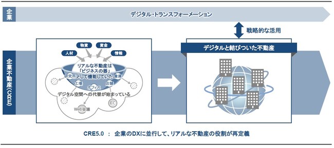 企業活動の一部は、その場を不動産からデジタル空間へ移行し、将来はリアルとデジタルが融合して機能発揮