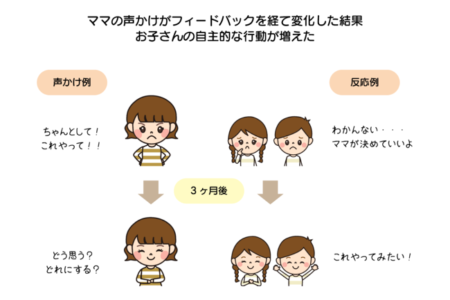 3ヶ月間のモニター提供により、継続することによってコミュニケーションの質が向上し、結果として子どもの行動や意欲に変化があったという結果も得られています。