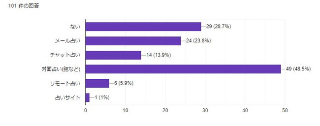 電話占い以外に、どのような占いサービスを利用したことがあるかアンケートを実施したところ、1位が48.5%で「対面占い(館など)」となりました。もともと対面で占いをしていた人が、昨今の社会情勢から電話占いを利用するようになったということもありそうです。