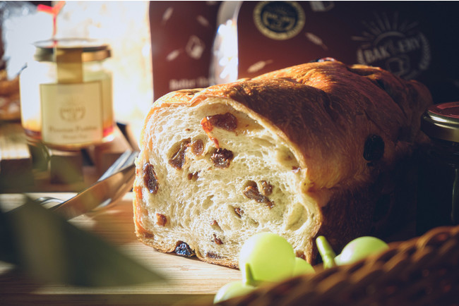 ・3つの果実の食感が楽しい「いちじくクルミレーズン生食パン」 1本 1,079円(税込)いちじく、クルミ、レーズンが、ゆめちから100%の生地に混ぜ合わさり、食べた瞬間に口の中でほどけるしあわせの美味しさ。もちもち生食パンの優しい甘みと、いちじく、レーズンのほのかな酸味、そしてクルミの食感が、何度でも口に運びたくなる止まらない美味しさを生んでいます。おやつに、食事に、食べ応えのある生食パンです。
