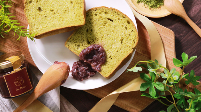 ・和スイーツみたいと評判「抹茶生食パン」 1本 1,079円(税込)『何もつけずにそのまま食べてみたら、抹茶の風味が口の中に広がって、まるで和のスイーツを食べてるみたい!』と、お客様から驚かれる「抹茶生食パン」。100%無添加・無着色・無香料の静岡県産最高級のお茶の葉をまるごと微粉末にした「茶葉茶」を使用。豊富なカテキンやビタミンなどの栄養素が含まれた「茶葉」を、丸ごとパン生地に練りこみました。お茶本来の風味と香り、ゆめちから100%の生地が生み出すもちもち感と小麦粉本来の旨味。開発にあたり、6種の茶葉で合計12パターンの試作品を作りました。この試作品を社内において様々な年代の社員・スタッフが試食し、アンケートを取ります。その結果を集計し、独自の「パン偏差値」を使って製品化する茶葉を決定したのです。茶葉の決定までにここまで手間暇をかけるのは、パンを作る職人の感性でパンを作るのではなく、一般の消費者が「本当に美味しい」と感じる製品にするため。一口食べたら何度でも口に運びたくなる、癖になる味と食感は、このような徹底したこだわりから生まれました。