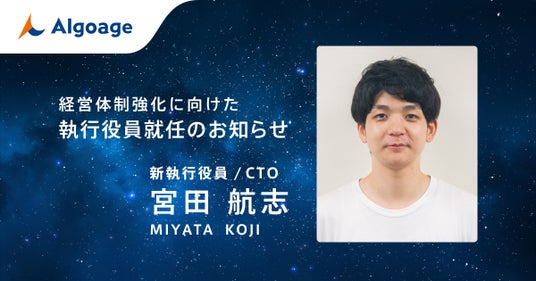 株式会社Algoage(本社:東京都文京区、代表取締役:横山勇輝、以下「当社」)は、2025年7月1日付で新たに宮田 航志が執行役員 / CTOに就任したことをお知らせいたします。