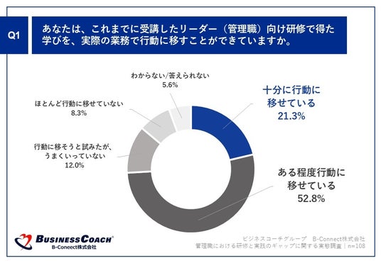 Q1.あなたは、これまでに受講したリーダー(管理職)向け研修で得た学びを、実際の業務で行動に移すことができていますか。