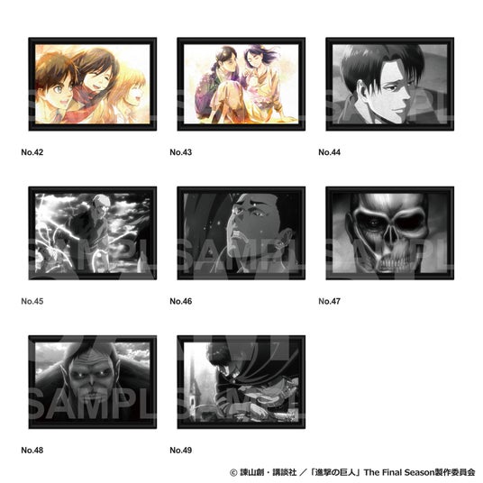TVアニメ『進撃の巨人』Season 1 ~ Season 3 をテーマとしたアート作品です。第3弾として17種類のデザインが発売されます。