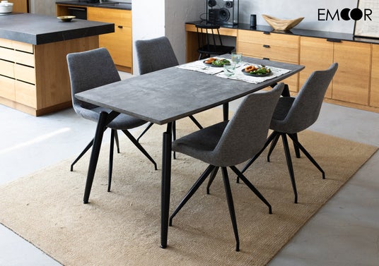 寝室インテリアのEC事業を展開する株式会社エムール(東京都立川市:代表取締役 高橋 幸司)は、2024年5月5日より、“ストーン調ダイニングセット”の先行予約販売を開始しました。シンプルでありながら個性的なデザインのテーブルと、スタイリッシュで特徴的な回転チェアの組み合わせはモダンな空間に相性抜群。ブラックスチールの脚で統一感のあるダイニングセットです。