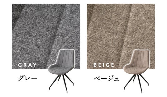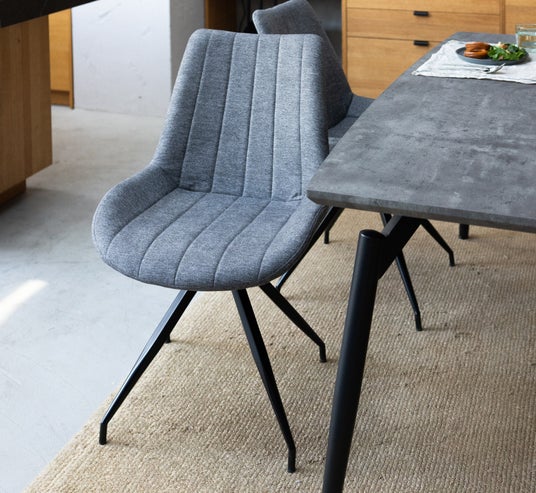 ダイニングチェアは、コーディネートしやすいグレーとベージュの2色展開。上質なファブリックを採用し、背もたれから座面にかけて施された縦のステッチが上品な印象に。