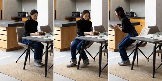 立ち座りの時にチェアを引く必要のない、回転式の座面は場所も取らず便利。引きずって床に傷をつける心配もありません。座ったまま身体の向きを変えられるので、スムーズな立ち座りができます。