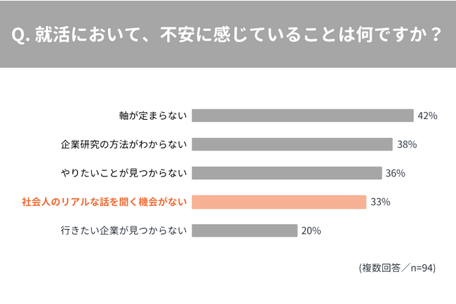 「将来に希望を持てた」「仕事をするのが楽しみになった」など、社会に出ることにマイナスなイメージを持っていると答えた学生たちも前向きな気持ちへと変化。就活に対する不安が払拭され、自分らしく就活に向き合おうとする声も多数集まりました。
