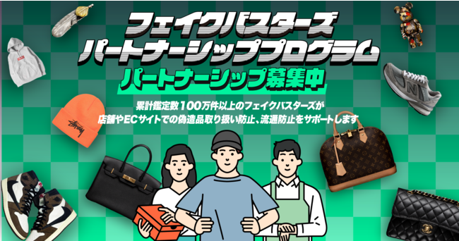 パートナーシッププログラムは、「フェイクバスターズ」の法人向けプログラムです。当プログラムをご利用いただくことで、企業やお店のご担当者様は自社・自店舗の店頭、ECサイト、その他ECモールでお取引されているリセール商品が本物であると証明することができます。