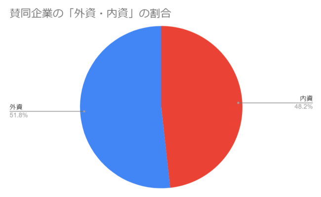 賛同企業・団体の内、従業員数が301人以上いる大企業に該当する企業数は、114社となりました。内、国内企業・外資系企業の賛同割合はほぼ50%で、国内企業の賛同が増えています。