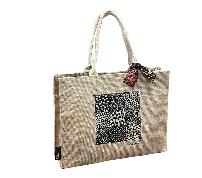 モザイク柄が光る「水戸岡鋭治デザイン ジュートバッグ」