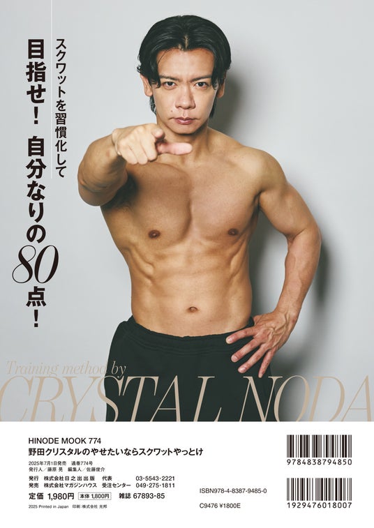 株式会社日之出出版(本社:東京都中央区)は、芸人・野田クリスタルによる初のボディメイク本『野田クリスタルのやせたいならスクワットやっとけ』を、2025年7月1日(火)に全国書店およびネット書店にて発売いたします。