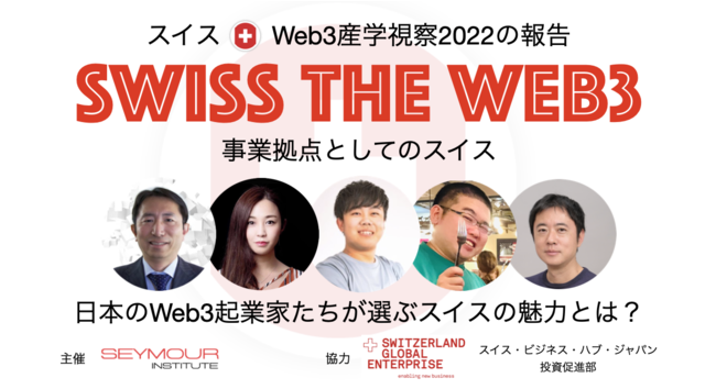スイスと日本のテクノロジーにおける産学連携活動を行う アカデミック シンクタンク SEYMOUR INSTITUTE 株式会社(本社:東京都渋谷区広尾、代表:太田真)は、スイス政府機関(在日スイス大使館内)スイス・ビジネス・ハブ・ジャパン投資促進部が協力する、事業拠点としてのスイスの魅力は発信する動画「事業拠点としてのスイス、Web3産学視察2022春の報告」を公開しました。動画にはスイスを拠点として活動する日本の若手起業家の方達が参加しています。