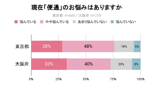 大阪の方が便通に関して強く悩みを抱えている人が多い傾向に