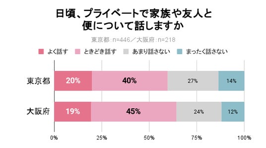 日頃から家族や友人と「便」に関する話をする人は約6割話す人の割合は大阪の方がやや多い傾向に
