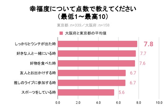 便通に悩みを持つウンログユーザーではしっかりとうんちが出た時の幸福度が、推しのライブやイベントに参加するときよりも高いことが判明